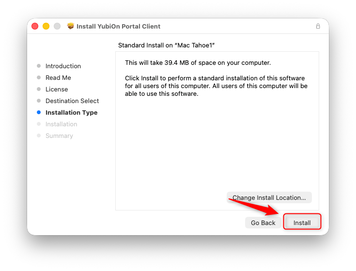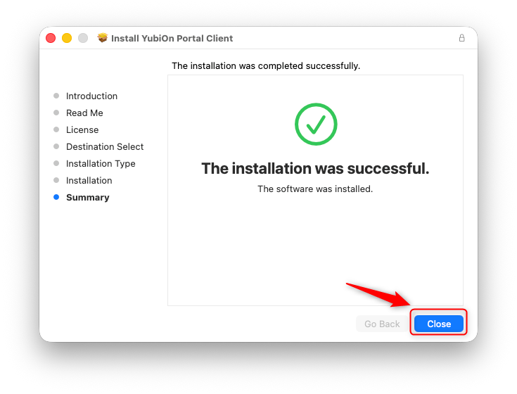 If it does not open, click “YubiOnPortalClient.pkg” while holding down the Control button and click “Open”.